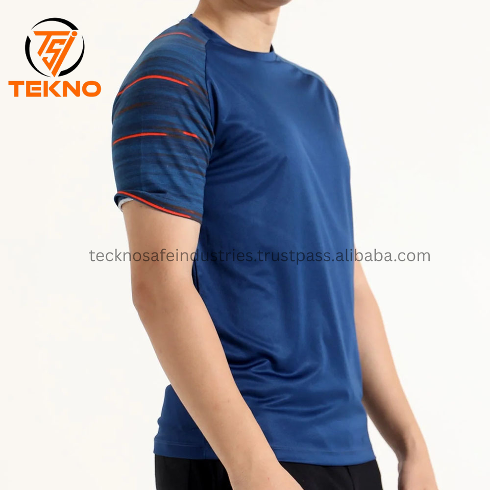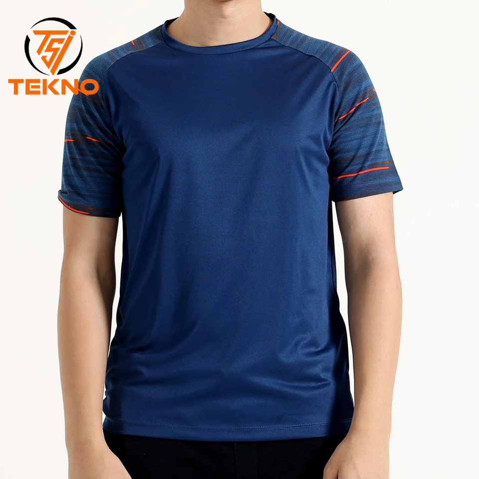 เสื้อยืดกีฬาผ้าโพลีเอสเตอร์ของผู้ชายระบายอากาศได้ดีแห้งเร็วสำหรับการฝึกออกกำลังกายในฤดูร้อน