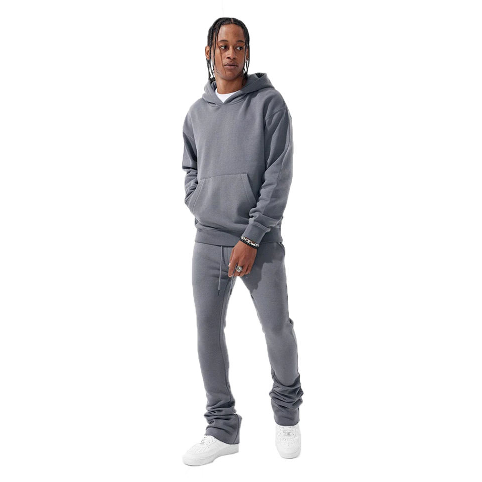 เสื้อวอร์มกางเกงวอร์มแขนยาวของผู้ชายชุดวอร์มลำลองสีเทามีกระเป๋าจิงโจ้