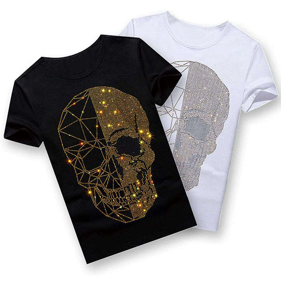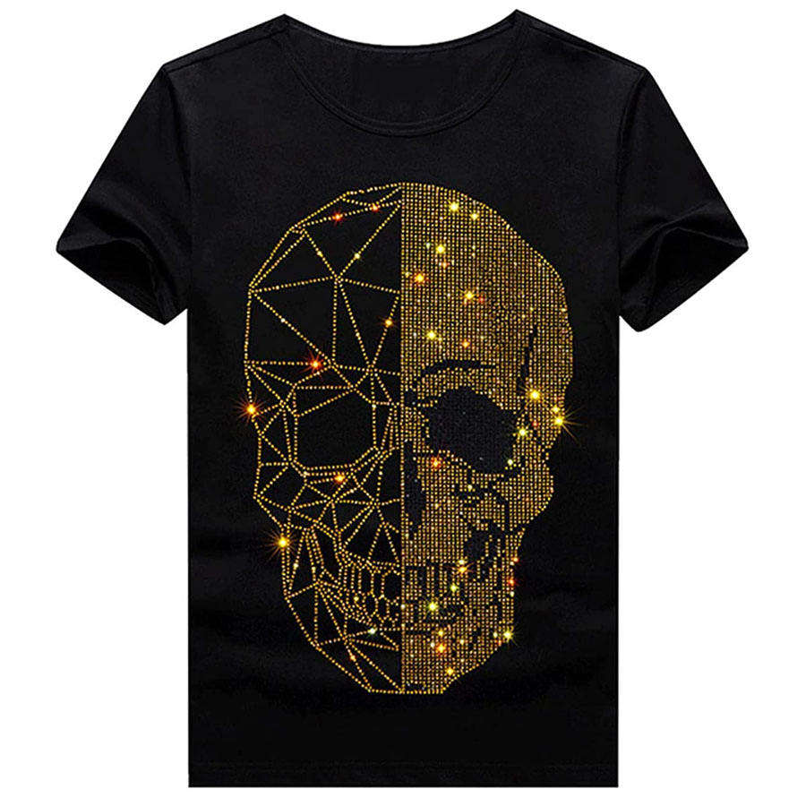 เสื้อยืดผู้ชายประดับพลอยเทียมลำลอง
