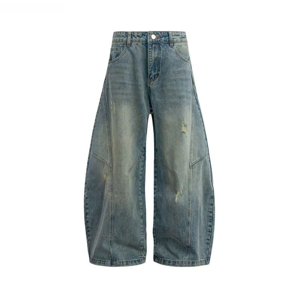 กางเกงยีนส์ทรงขาบานผู้ชายคุณภาพสูง ไซส์ใหญ่ สไตล์ไฮสตรีท ระบายอากาศได้ดี เอวสูง เคลือบผิว คุณภาพสูง ผ้าฝ้าย 100% ซักแล้ว