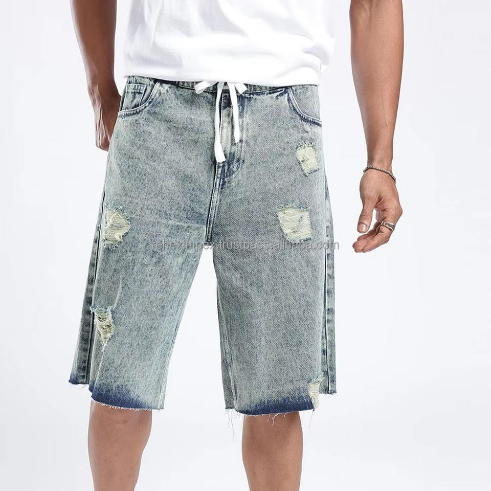 กางเกงขาสั้นผ้ายีนส์ชายหาดสำหรับผู้ชายกางเกงขาสั้นสำหรับฤดูร้อนขายส่ง