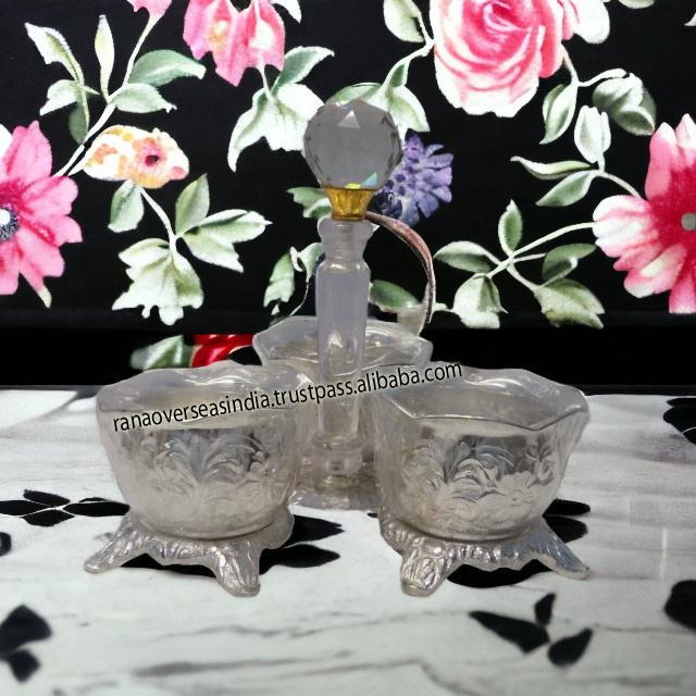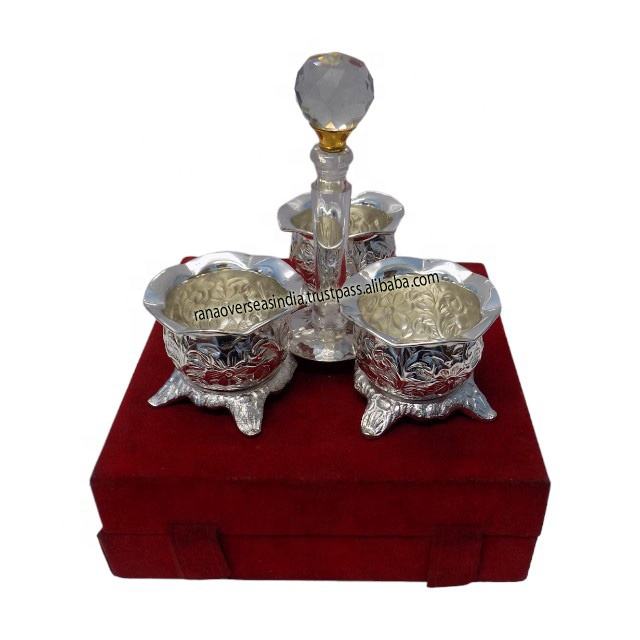ชามพร้อมขาตั้งและช้อนเคลือบโลหะเงินสำหรับของขวัญวันครบรอบแต่งงาน