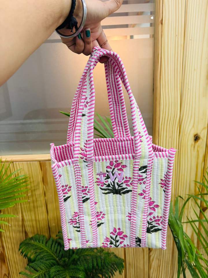 กระเป๋าโท้ทผ้าฝ้ายเย็บมือคุณภาพสูงสำหรับผู้หญิง ขนาดมินิ พร้อมสายโซ่ ปิดแบบเปิด กันน้ำ เหมาะสำหรับฤดูร้อน