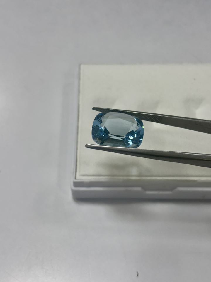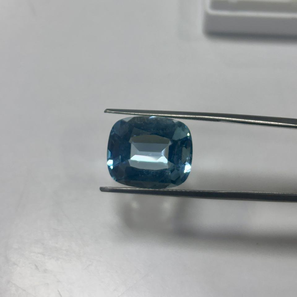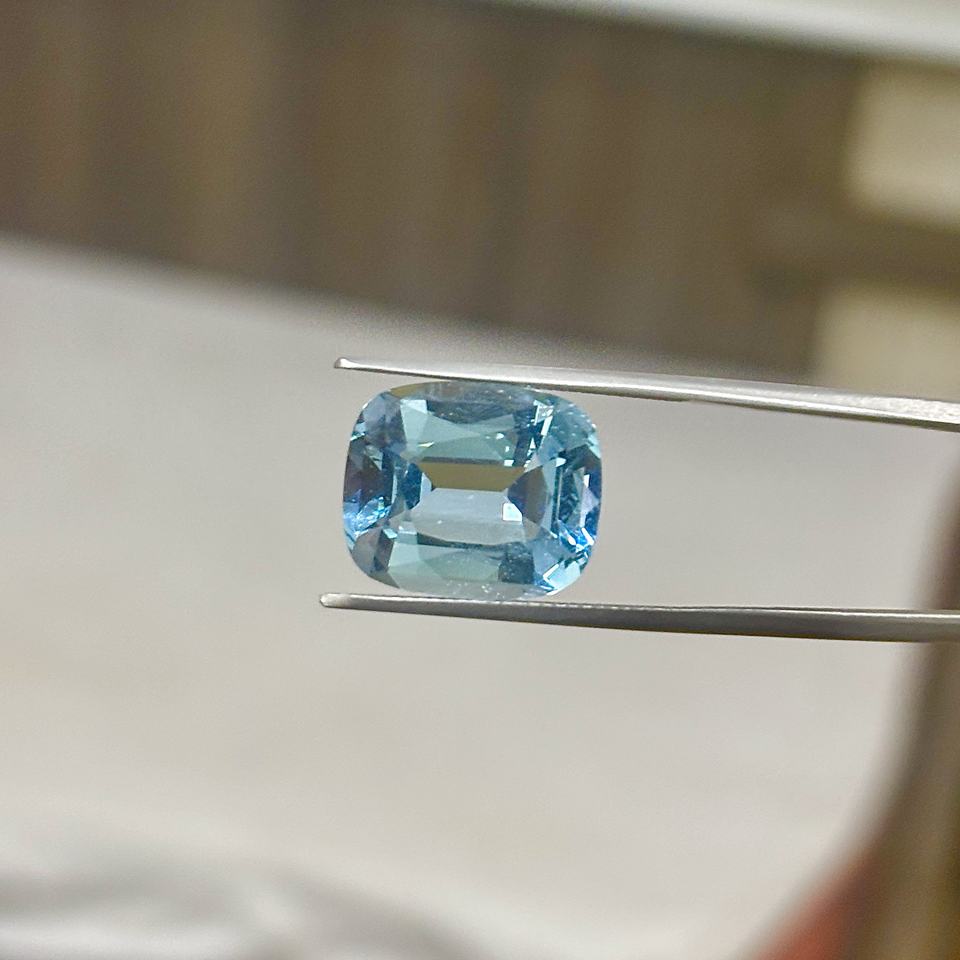 พลอยอะความารีนเบอร์ริลธรรมชาติคุณภาพสูง ทรงคุชชั่น เจียระไนเหลี่ยม รับรองสีฟ้าซานตามาเรีย น้ำหนัก 7 กะรัต