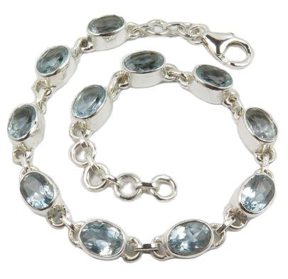 ที่มีคุณภาพสูงธรรมชาติสีฟ้าบุษราคัมพลอยสร้อยข้อมือที่ทำด้วยมือ925เครื่องประดับเงินสเตอร์ลิงราคาขายส่ง