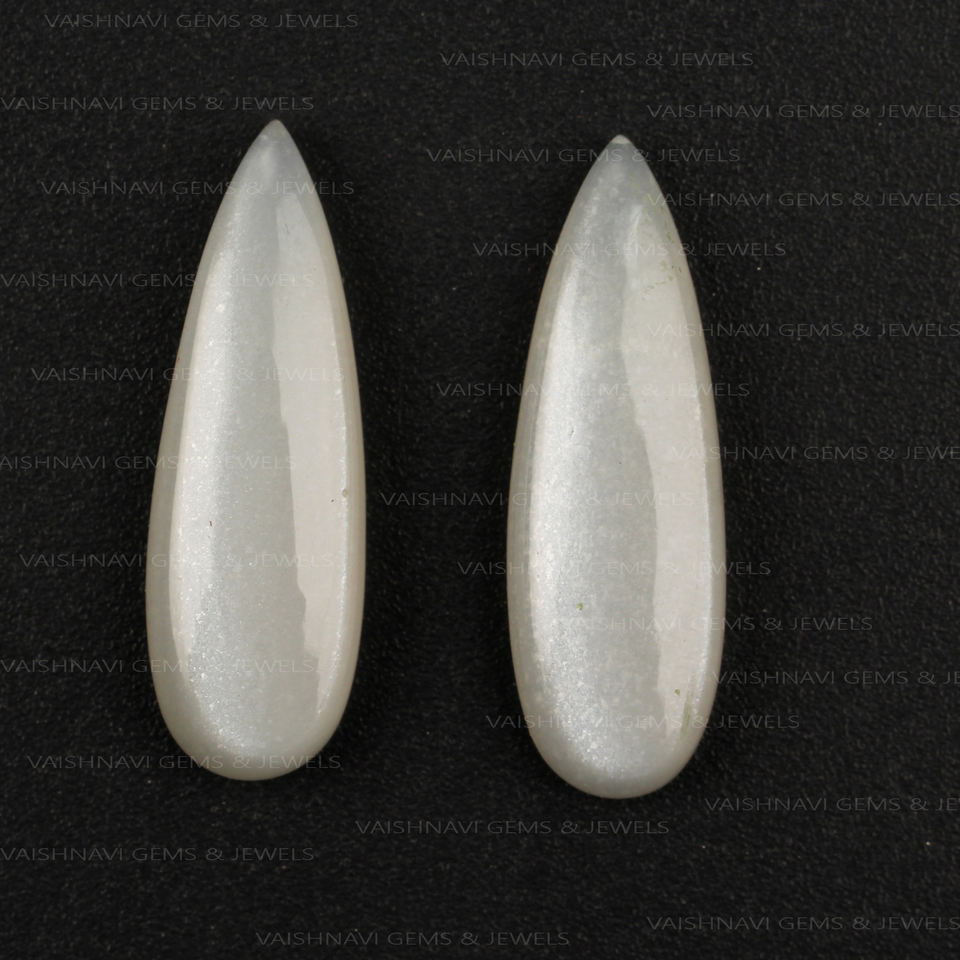 ลูกแพร์ยาวพลอยมูนสโตนสีเทาธรรมชาติคุณภาพสูง10X30มม. หลังแบนปรับเทียบอัญมณีทรงหลวมสำหรับทำเครื่องประดับ