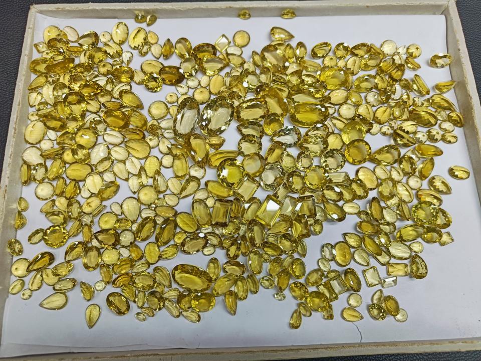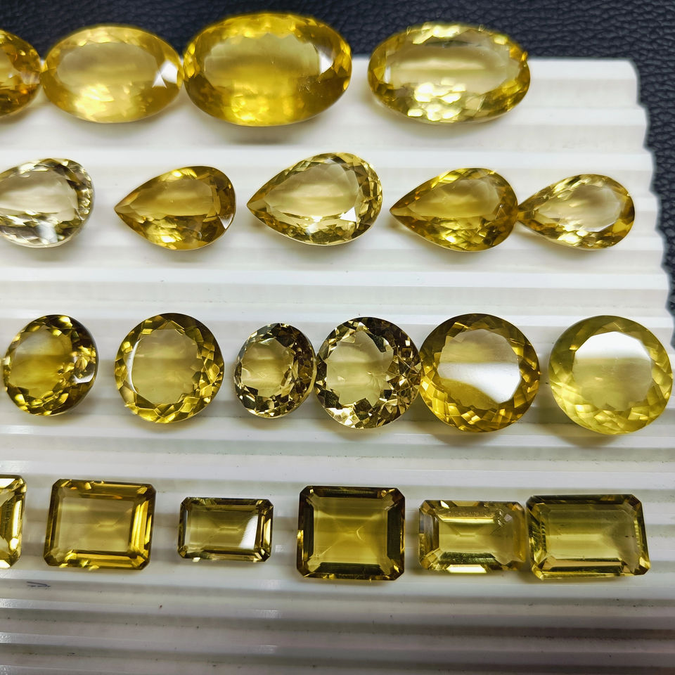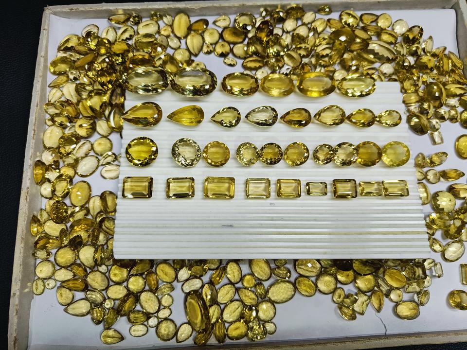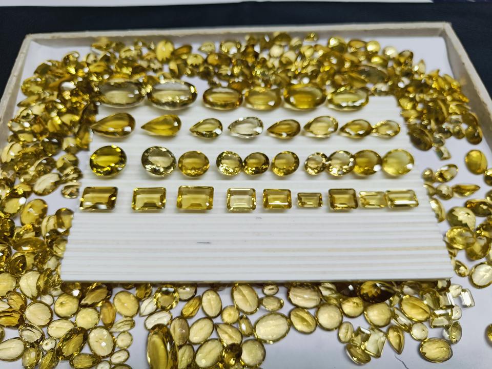 พลอยเลมอนควอตซ์ธรรมชาติคุณภาพสูง งานแฮนด์เมด เกรดพรีเมียม ทรงผสม สีเหลือง ขนาดฟรีไซส์ เมห์ราจูดิน เจมส์ รับประกันคุณภาพโดยบุคคลที่สาม