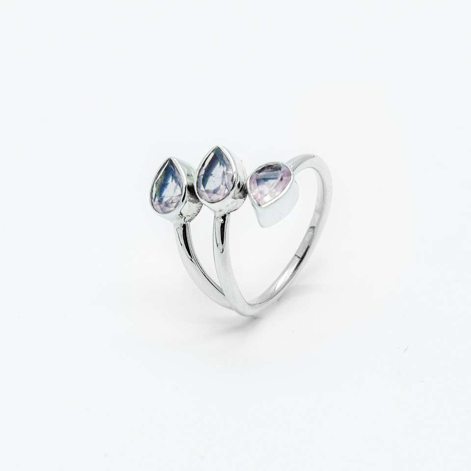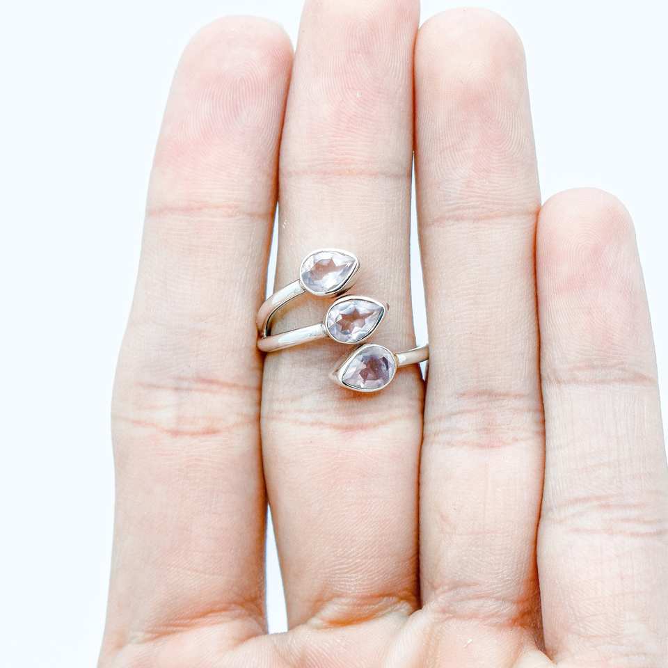 ชุดฝาหินอัญมณีควอตซ์เหลี่ยมเพชรพลอยลูกแพร์ธรรมชาติ925สเตอร์ลิงแหวนปรับได้ของขวัญเครื่องประดับสำหรับเธอ