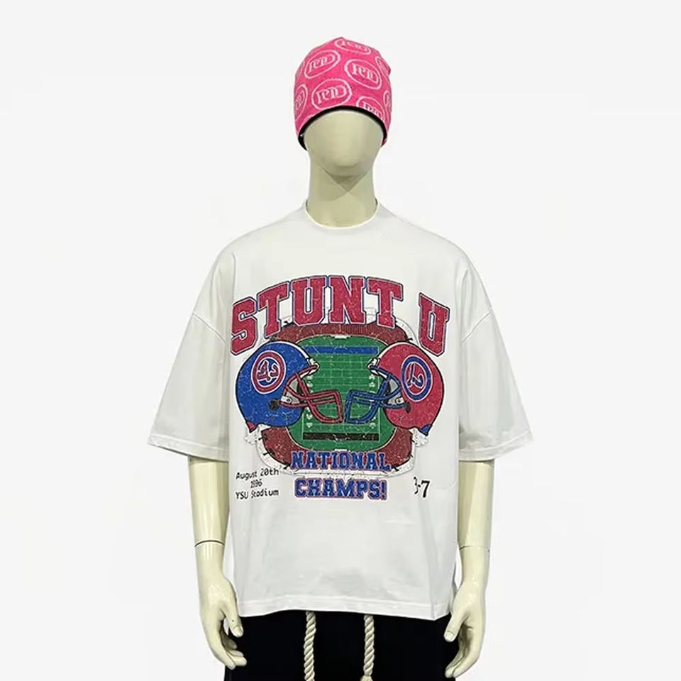 เสื้อยืดกีฬาลำลองสำหรับผู้ชายเสื้อยืดพิมพ์ลายทรงหลวมทันสมัยออกแบบโลโก้ได้ตามต้องการสไตล์ใหม่