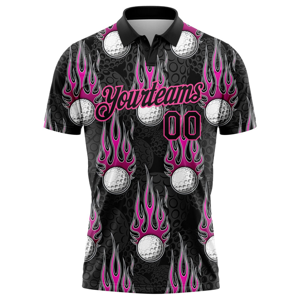 เสื้อยืดคุณภาพสูง OEM แบบสั่งทำพิเศษ สีดำและชมพู พิมพ์ลายลูกกอล์ฟ พร้อมกระเป๋า ระบายอากาศได้ดี แห้งเร็ว ซักแล้ว พร้อมโลโก้ทีม