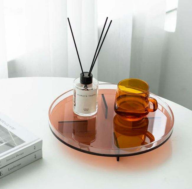 ถาดเสิร์ฟอะคริลิกทรงกลมสีส้มสุดหรูและแข็งแรงเหมาะสำหรับบริการอาหารในโรงแรมร้านอาหารและคาเฟ่
