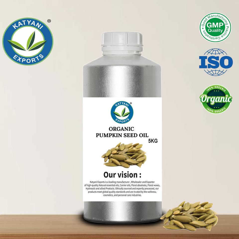 น้ำมันเมล็ดฟักทองออร์แกนิกคุณภาพสูง (Cucurbita pepo) สกัดเย็น สำหรับสูตรเครื่องสำอาง ผู้จัดจำหน่ายขายส่งในอินเดีย