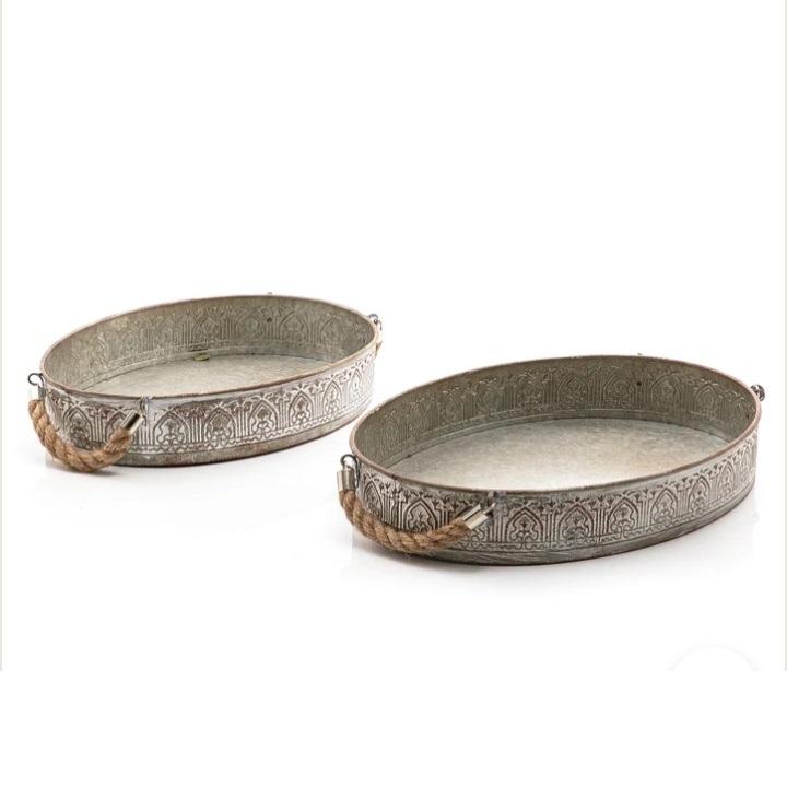 ถาดเสิร์ฟอาหารดีไซน์แบบตอกทำถาดเสิร์ฟชากาแฟอาหารถาดทรงวงรีคุณภาพสูงสำหรับบริการจัดเลี้ยงในห้องครัว