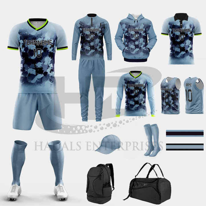 ทีมฟุตบอลขนาดใหญ่คุณภาพสูงสวมชุดฟุตบอลวัสดุที่ทนทานชุดฟุตบอล