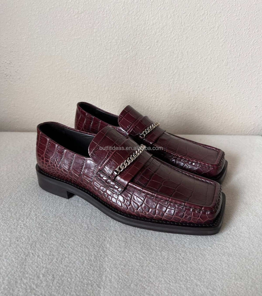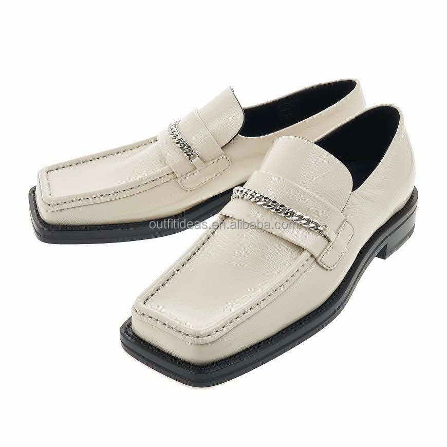 รองเท้าโลฟเฟอร์หนังลูกวัวลายสิทธิบัตรใหม่พร้อมป้ายสำหรับทุกเพศผู้หญิงผู้ชายรองเท้าหนังลูกวัวมีโซ่30มม.