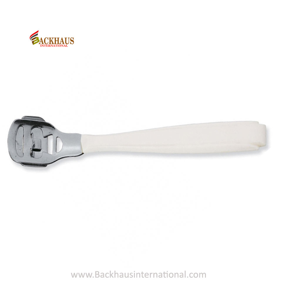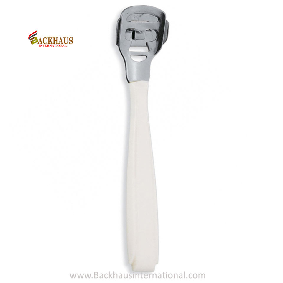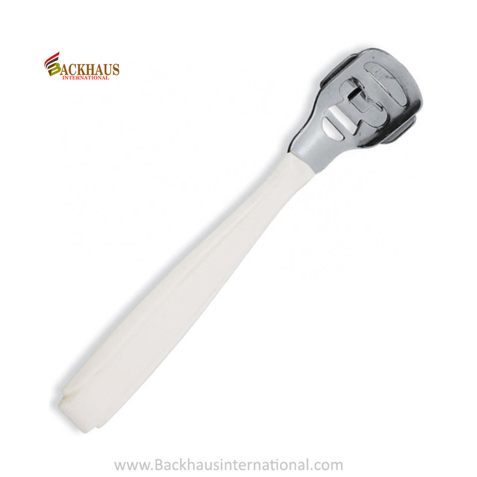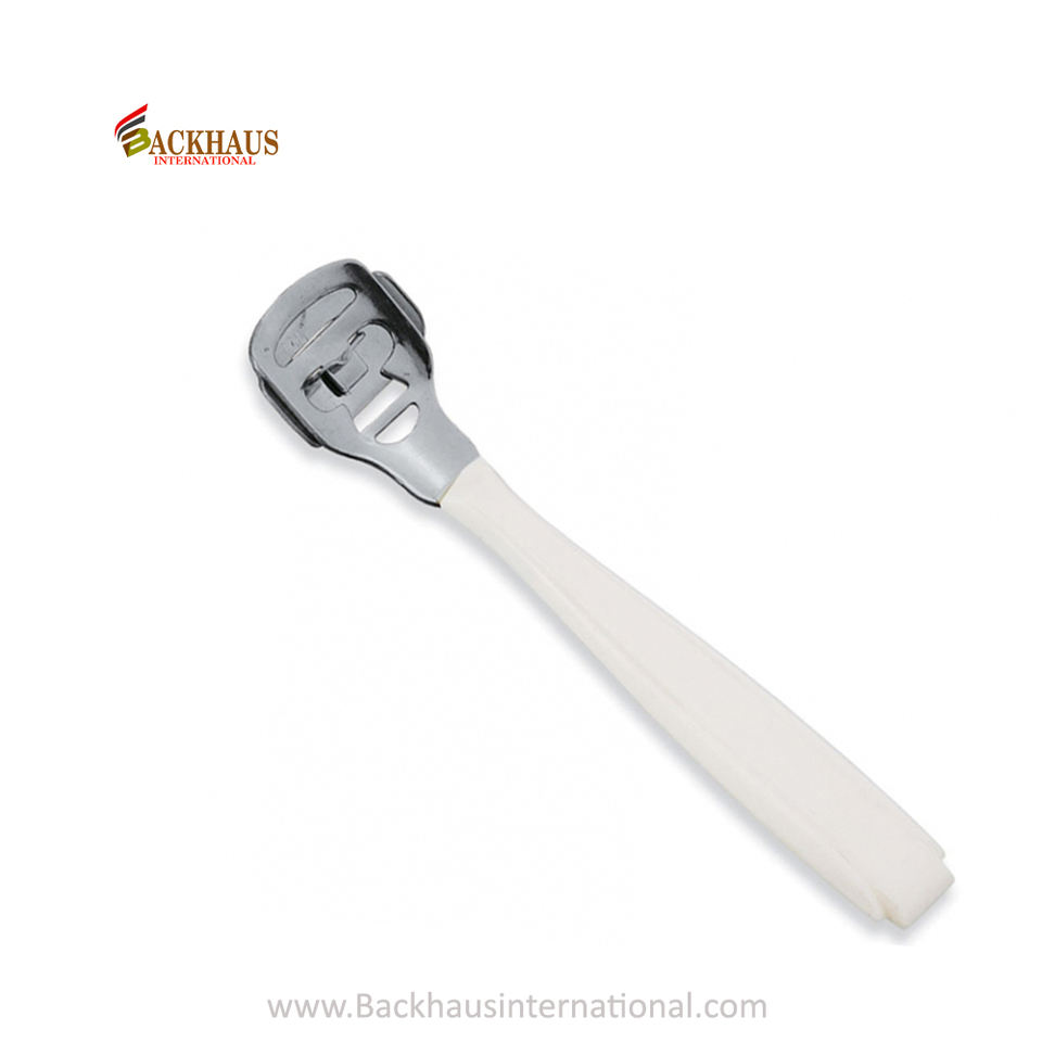การดูแลส่วนบุคคลคุณภาพสูงกําจัดแคลลัสผิวที่ตายแคลลัสเครื่องตัดข้าวโพดด้ามพลาสติกพร้อมหัวโลหะเหล็กกําจัดแคลลัส