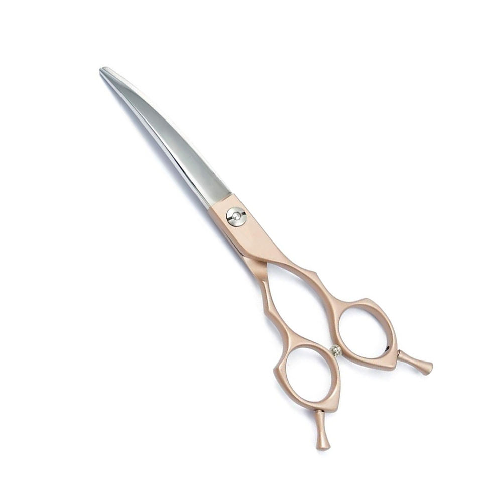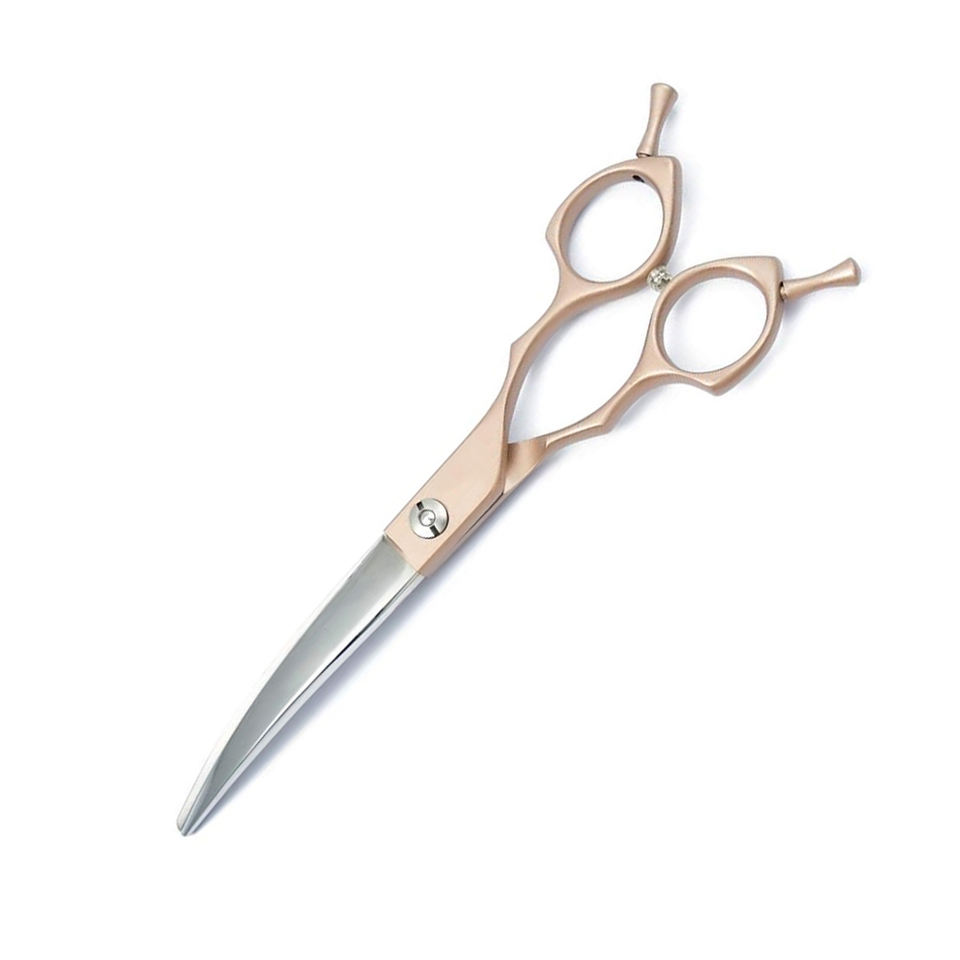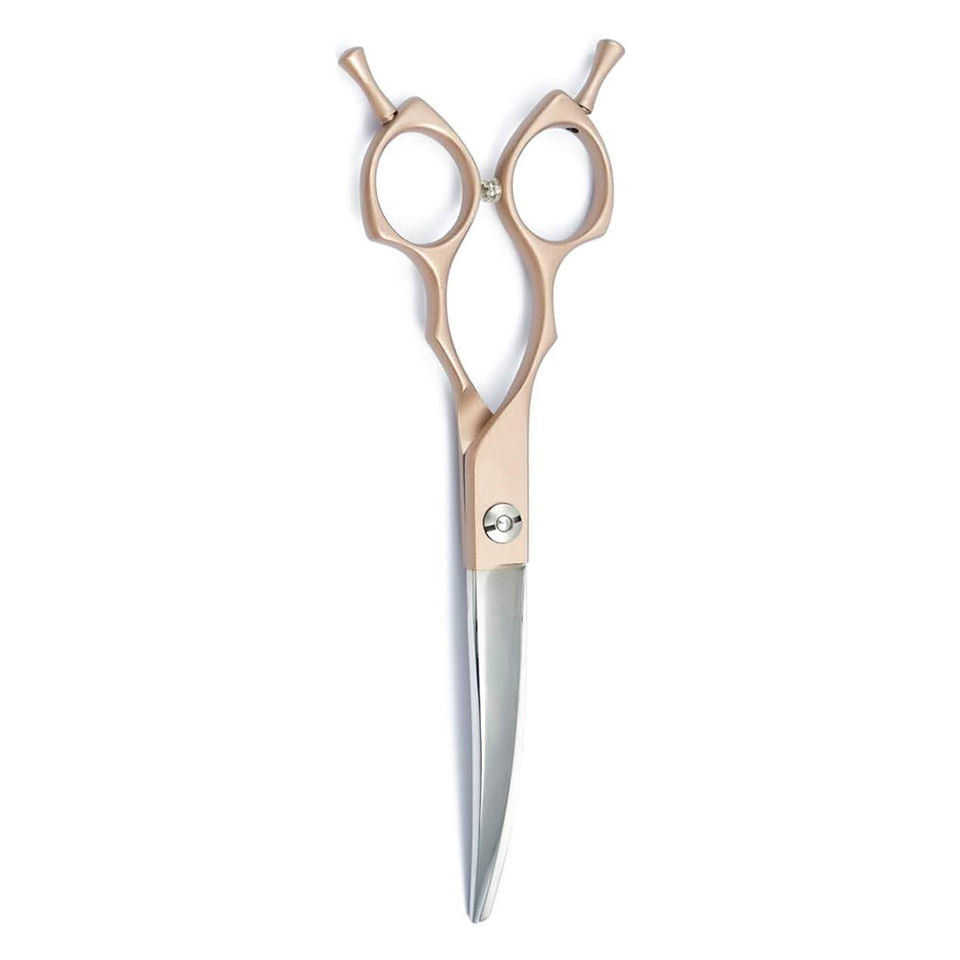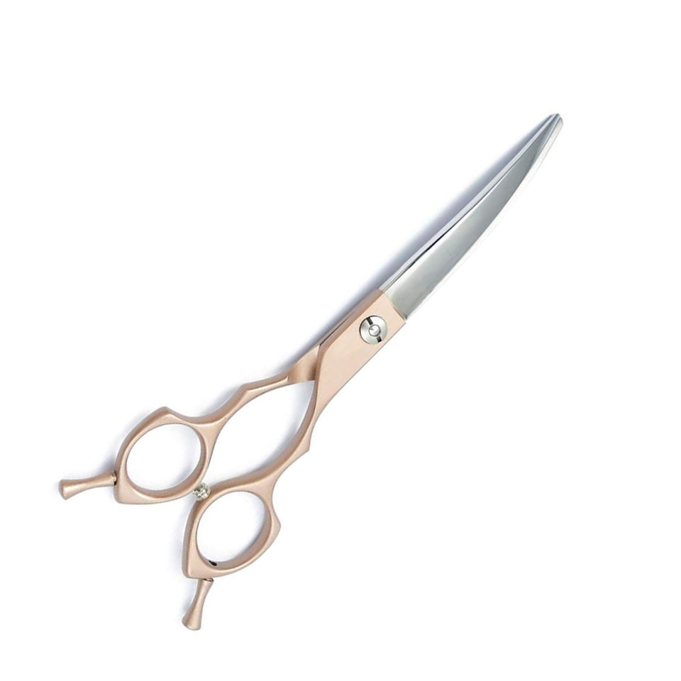 กรรไกรตัดขนสัตว์เลี้ยงแบบโค้ง6.5นิ้วแบบมืออาชีพพร้อมที่พักสองนิ้วมือขวา