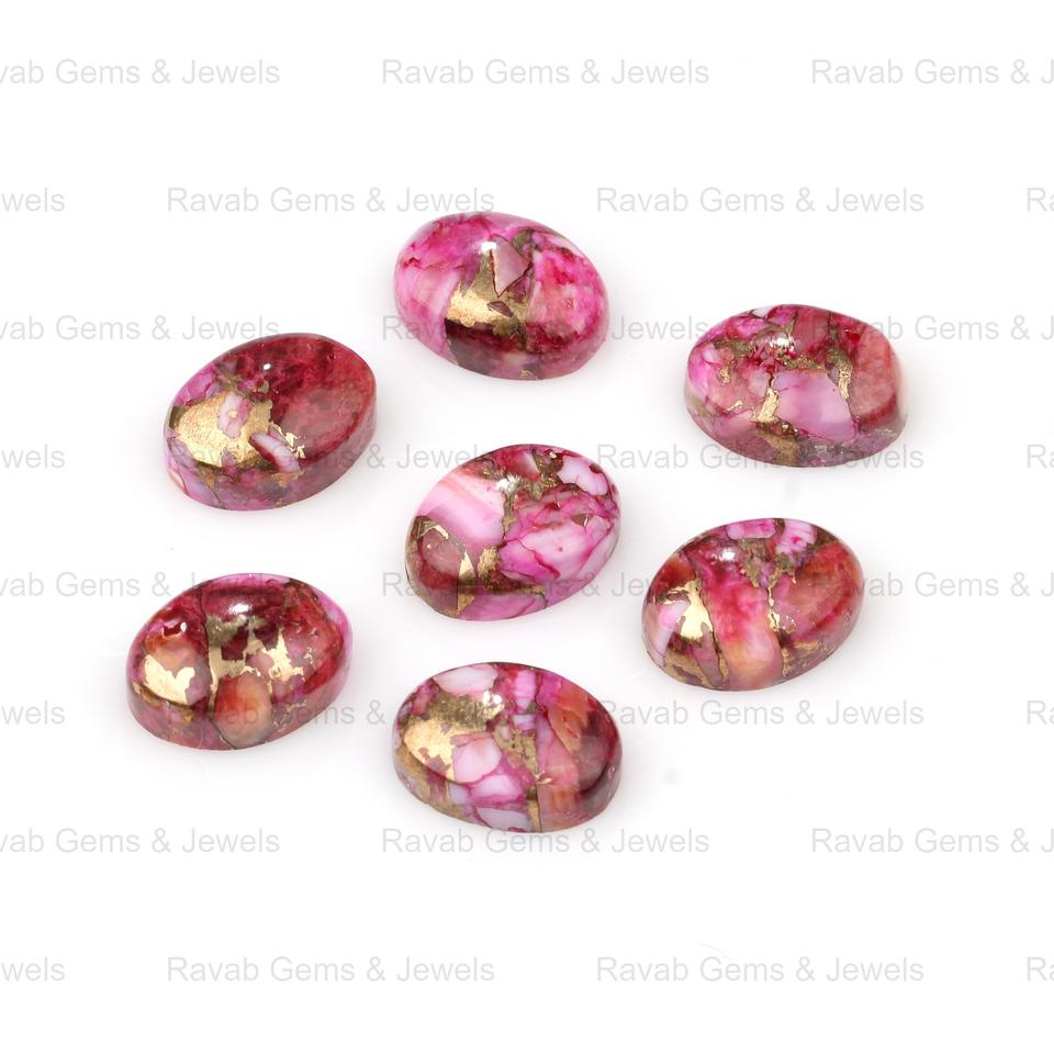 หินทองแดงเปลือกหอยนางรมสีชมพูขนาด10X14มม. รูปไข่ทรงโค้งหลังเรียบอัญมณีสำหรับทำเครื่องประดับขายส่ง