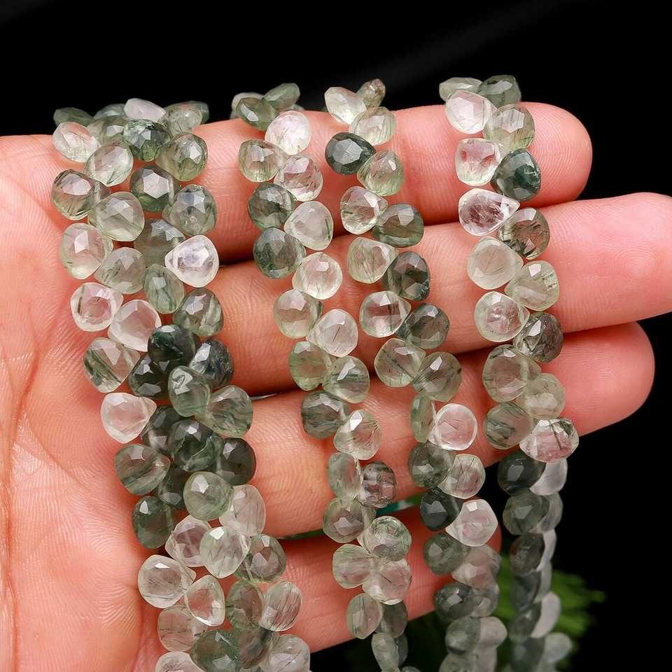 ลูกปัด Briolette รูปหัวใจสีเขียวขัดเงาพร้อมความแวววาวที่ยอดเยี่ยมสำหรับสร้อยข้อมือสร้อยคอและเครื่องประดับแบบทำมือ