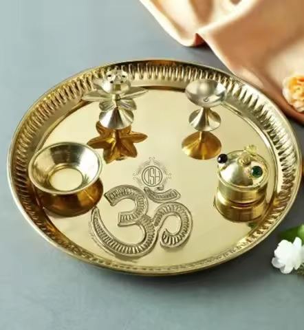 งานหัตถกรรมทรงกลม Pooja Thali ใช้มือบูชางานหัตถกรรมใช้เป็นของขวัญ