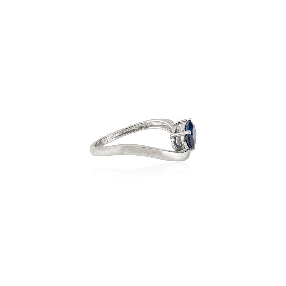 แหวนทองคำขาว K14 ประดับพลอยไพลินสีน้ำเงินคุณภาพสูง ดีไซน์เกลียวคลื่น สามารถสวมซ้อนกันได้ เหมาะสำหรับทั้งชายและหญิง รับสั่งซื้อจำนวนมาก