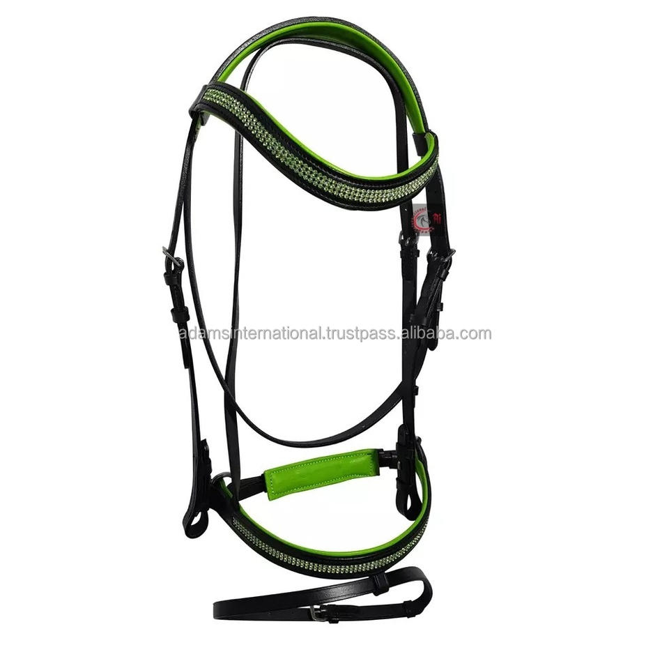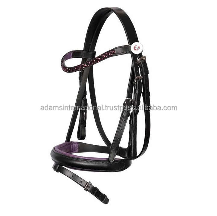 ที่มีคุณภาพสูงพรีเมี่ยมหนังบังเหียนม้าที่มีคริสตัลคิ้วอุปกรณ์ม้าที่มีเบาะนุ่ม Headpiece และ Noseband