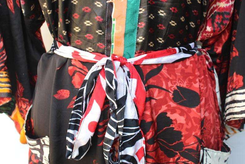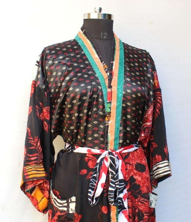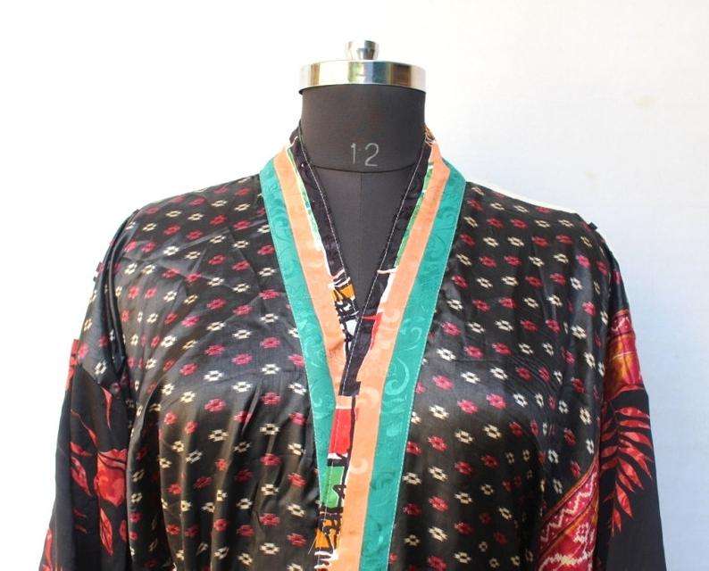 เสื้อคลุมกิโมโนพิมพ์ลาย,เสื้อคลุมลำลองผ้าไหมส่าหรีชุดคลุมอาบน้ำชายหาดกิโมโนคาฟตันอินเดีย