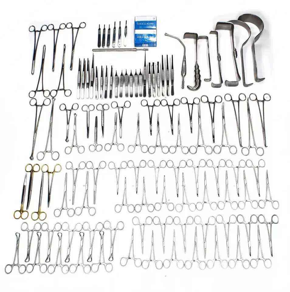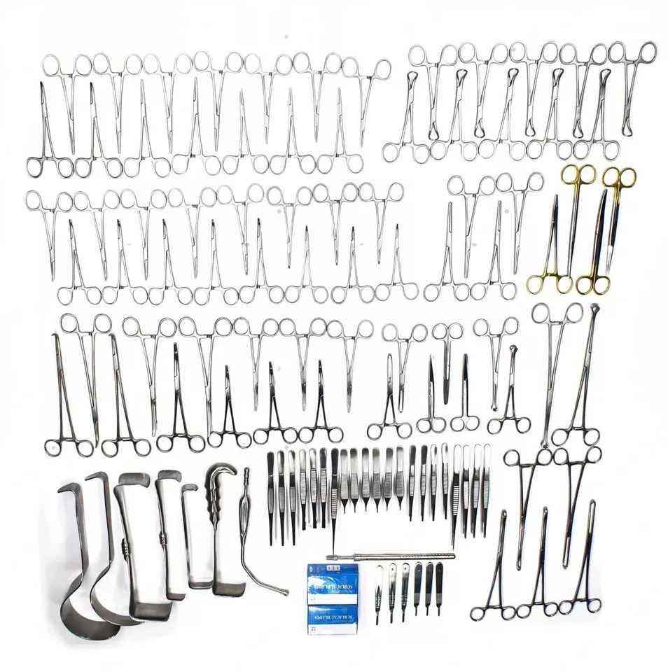 ชุดผ่าตัดการผ่าตัดช่องท้องแบบมืออาชีพชุดผ่าตัดทำจากสเตนเลสสตีล108ชิ้นพร้อมกล่องฆ่าเชื้อสำหรับอุปกรณ์ผ่าตัดช่องท้อง
