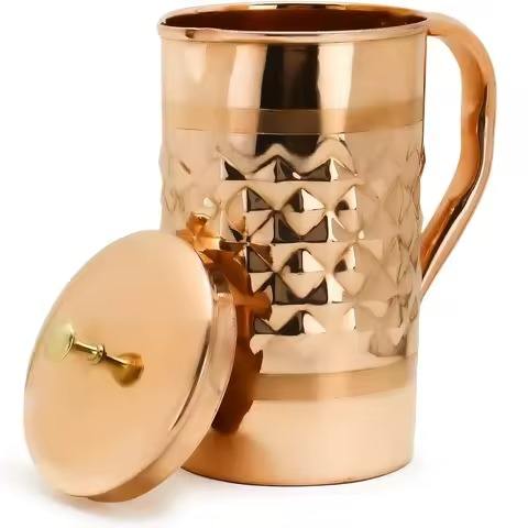เหยือกทองแดงบริสุทธิ์คุณภาพสูงสำหรับน้ำดื่มน้ำหนักเบาและพกพาได้พร้อมผิวมันเรียบหรูใช้งานได้ทั้งวัน