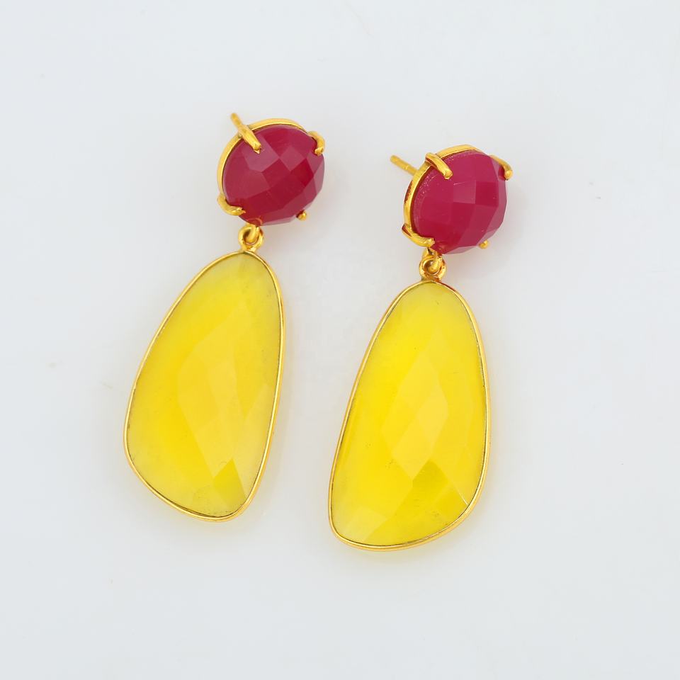 ตุ้มหูคุณภาพสูงสีบานเย็นและ925โอนิกซ์สีเหลืองธรรมชาติต่างหูชุบทอง18K