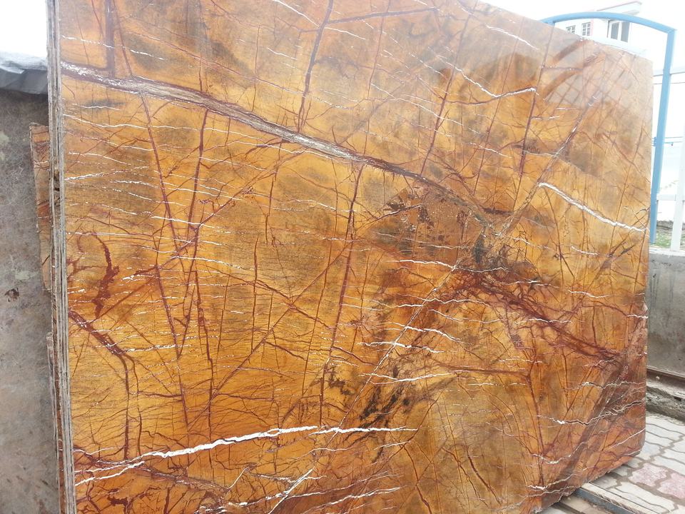แผ่นและกระเบื้องหินอ่อนสีทองป่าฝนที่มีคุณภาพสูงเหมาะสำหรับพื้นเคาน์เตอร์และผนังจากอินเดียโดย vinayak