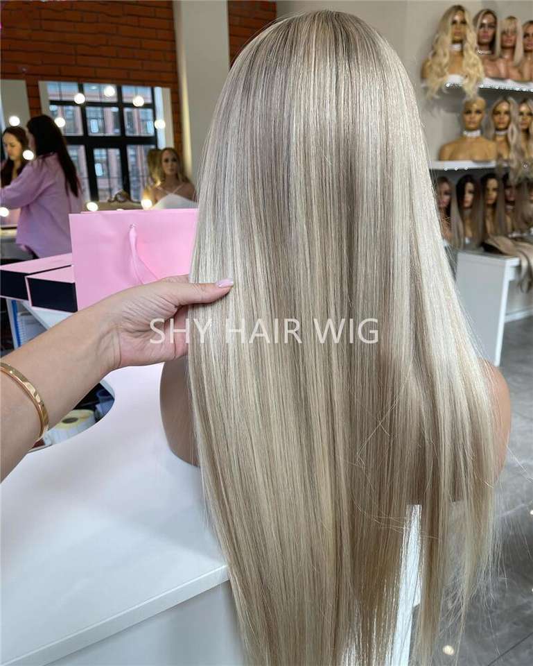 วิกผมหน้าผากลูกไม้สีบลอนด์คุณภาพสูงจากผมยุโรปแท้ แบบใส สำหรับผมตรง สำหรับผู้หญิง ผมแท้เรมี่ ขนาด 20-30 นิ้ว
