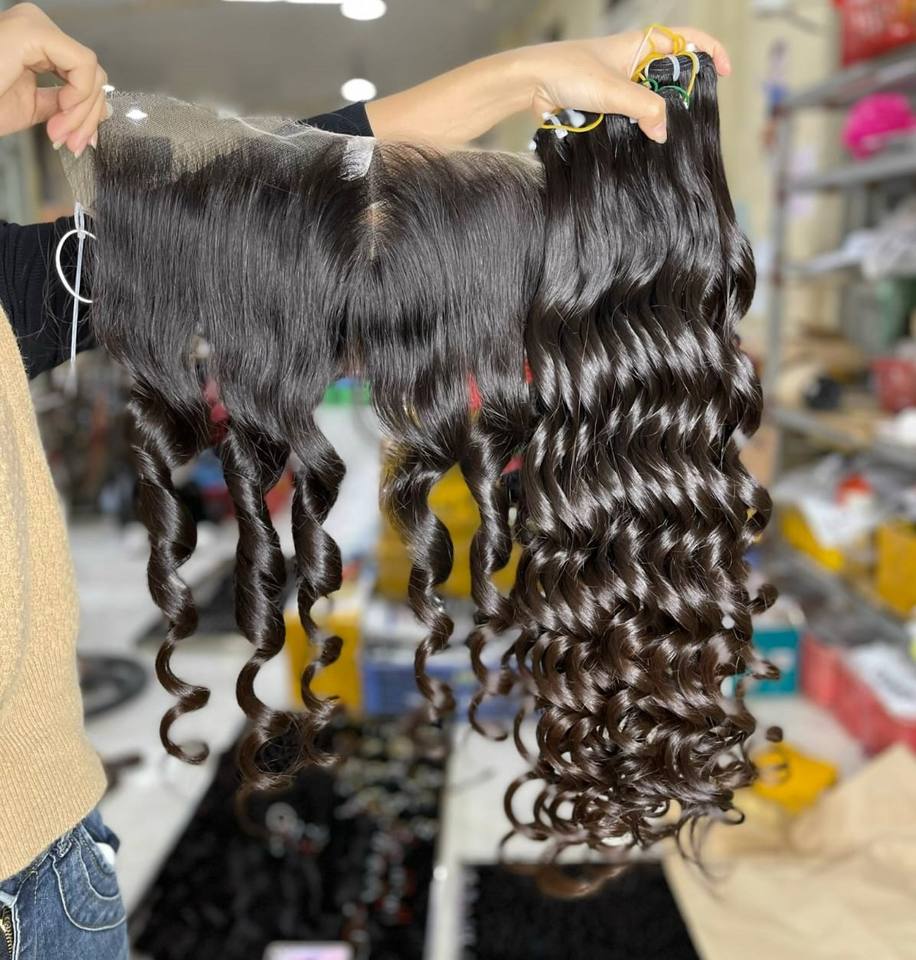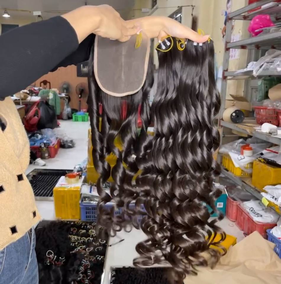 มัดผมสีน้ำตาลแบบเด้งพร้อมแผ่นปิดและด้านหน้าเพื่อทำวิก