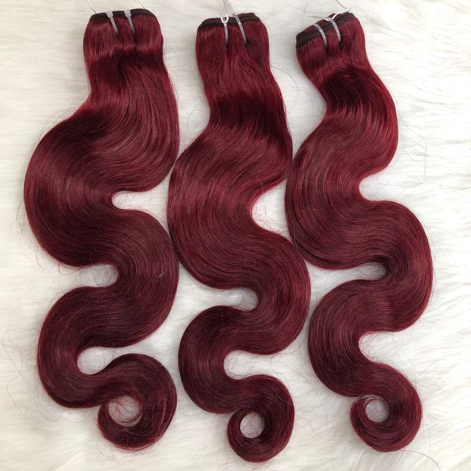 ที่มีคุณภาพสูงสีแดงน้ำร่างกายหยักเวอร์จินมนุษย์ผมรวมกลุ่มต่อผม APOHAIR 100% จักรเย็บผ้าคู่ Wefted ขยาย