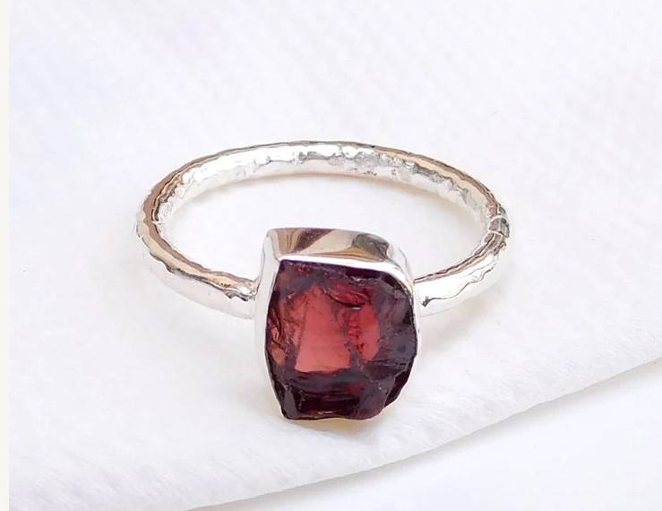 ด้านคุณภาพสีแดงหินโกเมนพลอยทำด้วยมือสุภาพสตรีแหวนเงินแท้925เครื่องประดับ