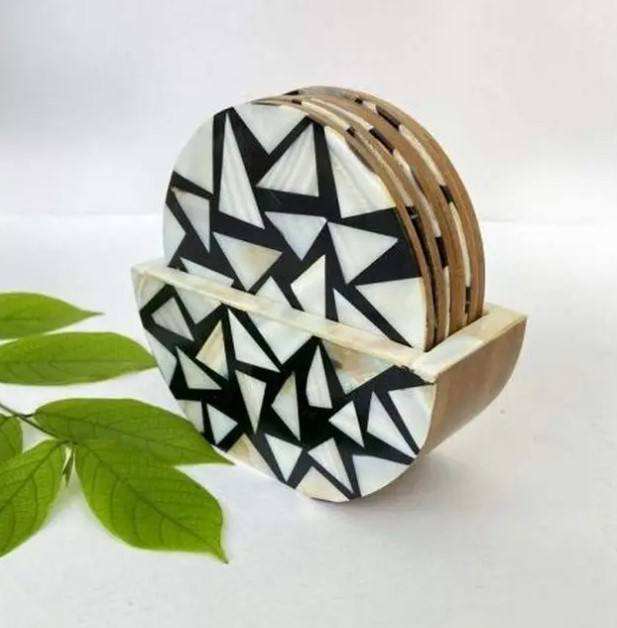 ถาดรองแก้วฝังกระดูกทำจากเรซิ่นและฝังก้างปลาดีไซน์คลาสสิก