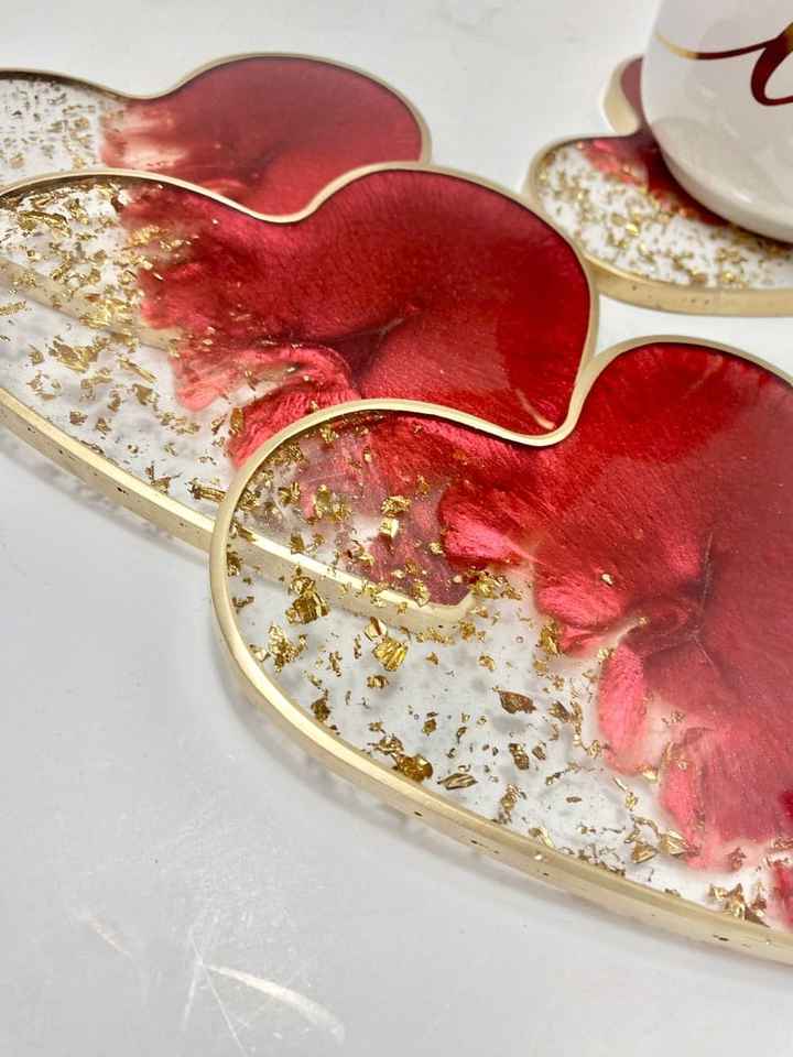 ที่รองแก้วเรซินรูปร่างหัวใจที่รองแก้วเรซินรูปแบบพรีเมี่ยมสำหรับโต๊ะทำงานที่บ้านและสำนักงานที่รองแก้วแฮนด์เมดโดย HWC