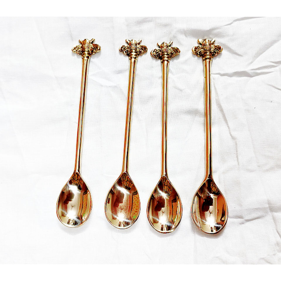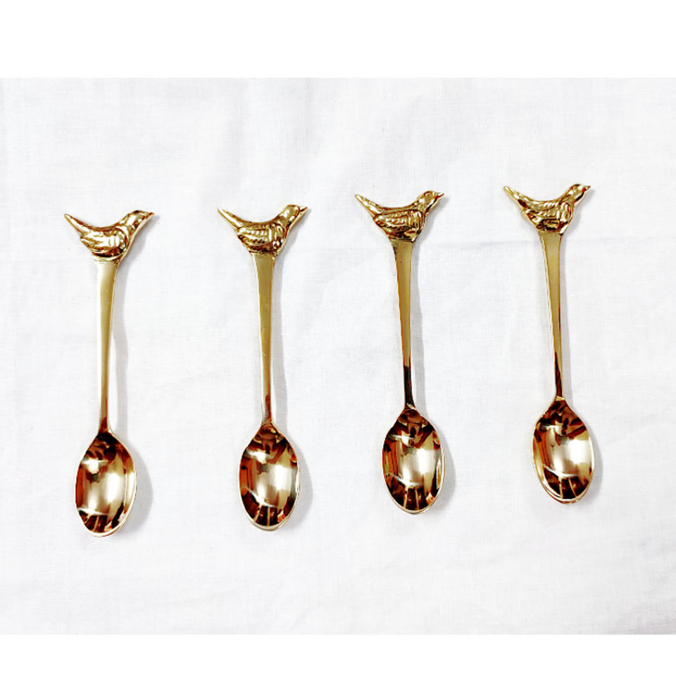 ช้อนกาแฟทองเหลืองสีเงิน,ชุด4ชิ้นมีโลโก้และรูปร่างช้อนเล็กช้อนเด็กราคาถูก