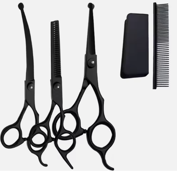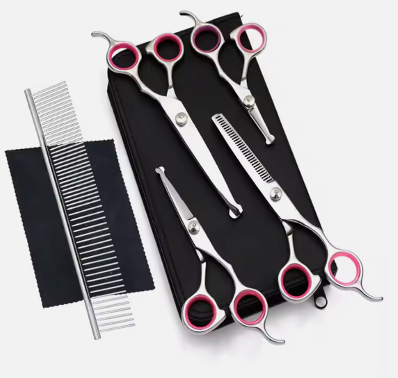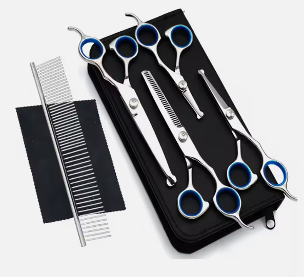ชุดกรรไกรซอยผมสีเงินคุณภาพสูง 6 ชิ้น ชุดอุปกรณ์ตัดผมสวยงาม พร้อมซองหนังแบบมีซิป