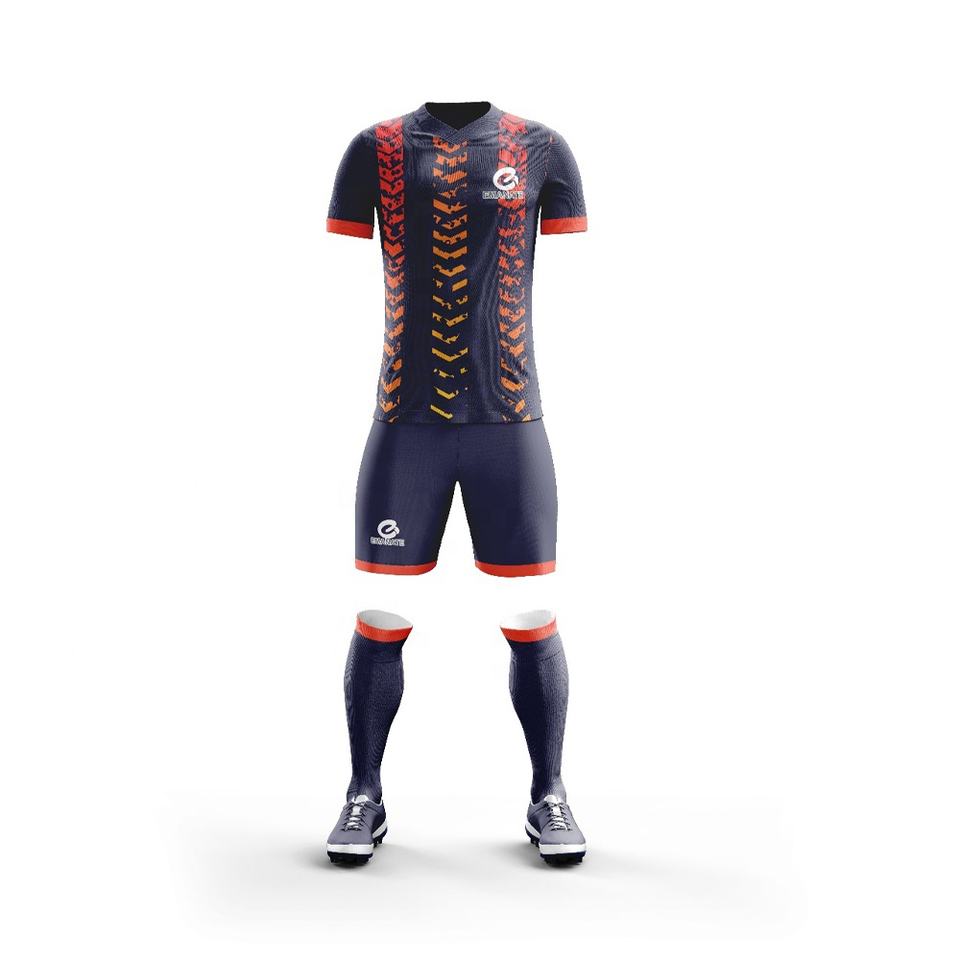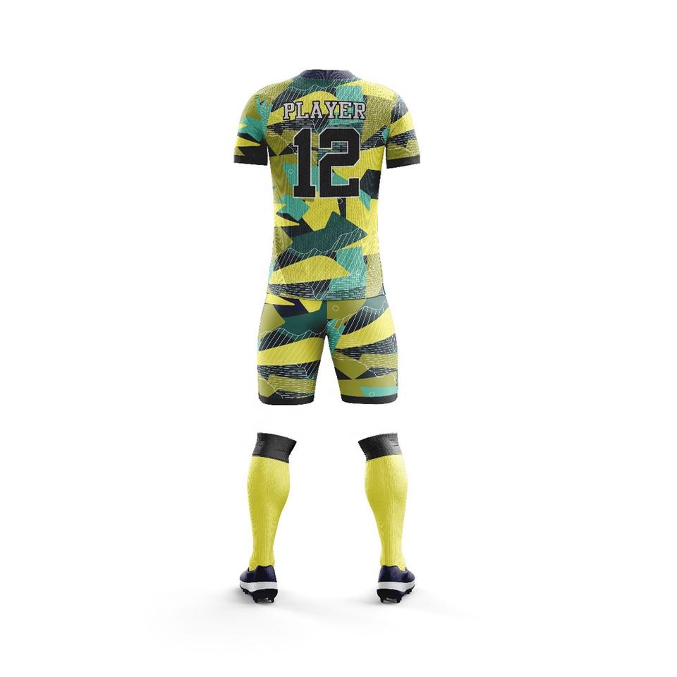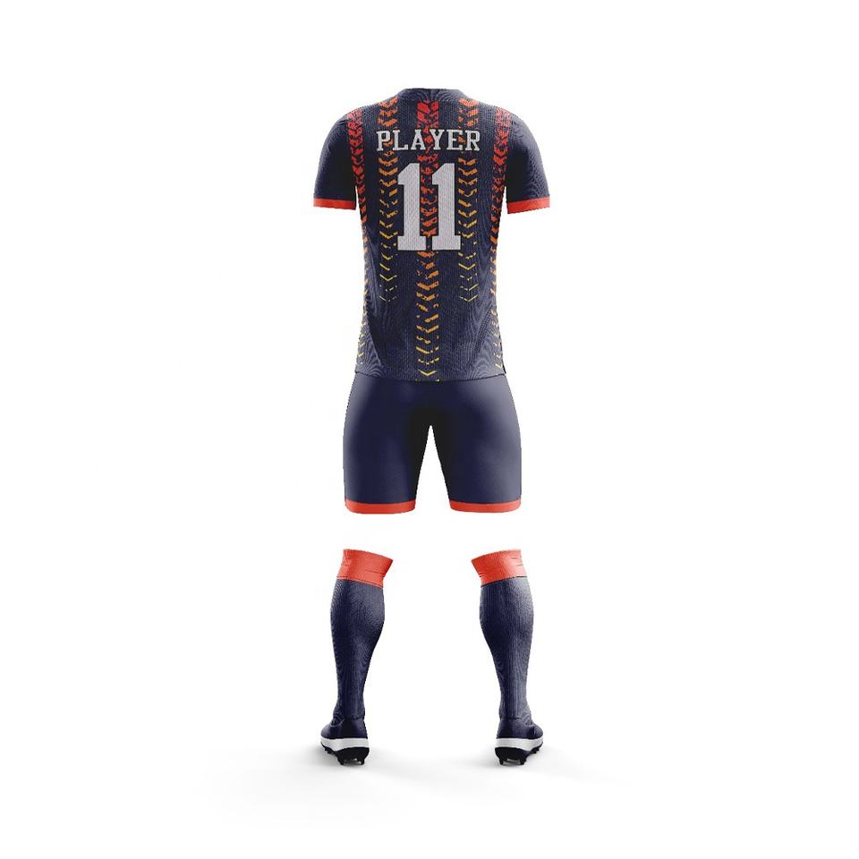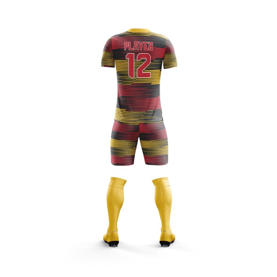 ชุดฟุตบอลแขนสั้นคุณภาพสูง ระบายอากาศได้ดี น้ำหนักเบา ปรับแต่งสีและโลโก้ได้ ผลิตจากโพลีเอสเตอร์ 100%