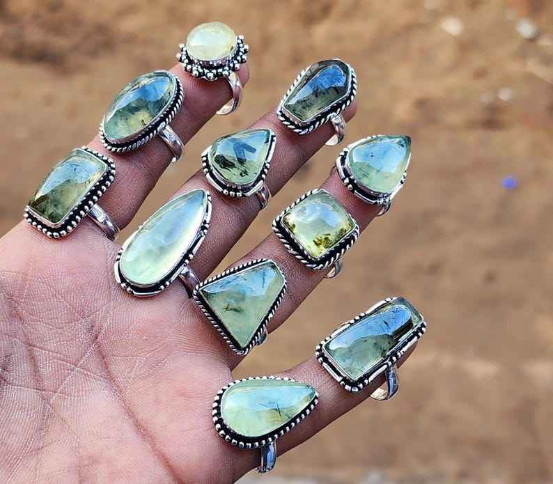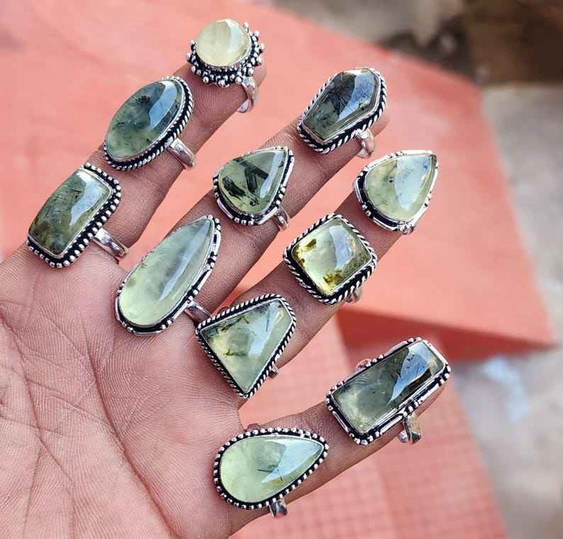 925แข็งชุบเงินแท้คุณภาพดีเยี่ยมดีไซน์เนอร์ทรงรี prehnite งานแฮนด์เมดขายส่งจำนวนมาก