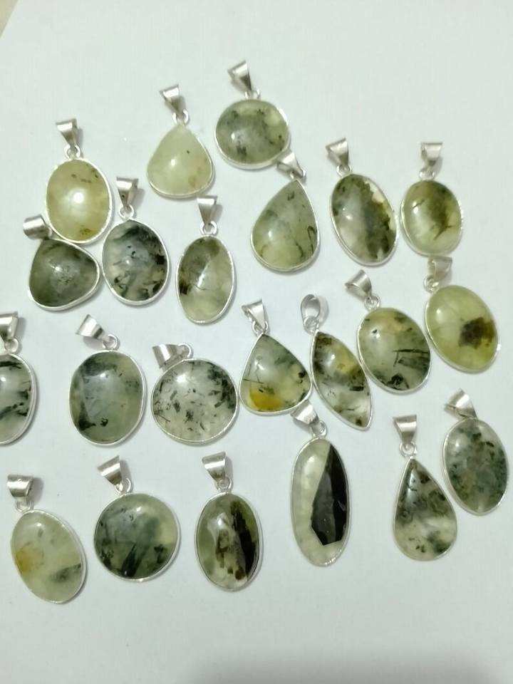 จี้อัญมณีหินพรีไนต์ธรรมชาติชุบเงิน925แข็งสำหรับผู้หญิงขายส่ง