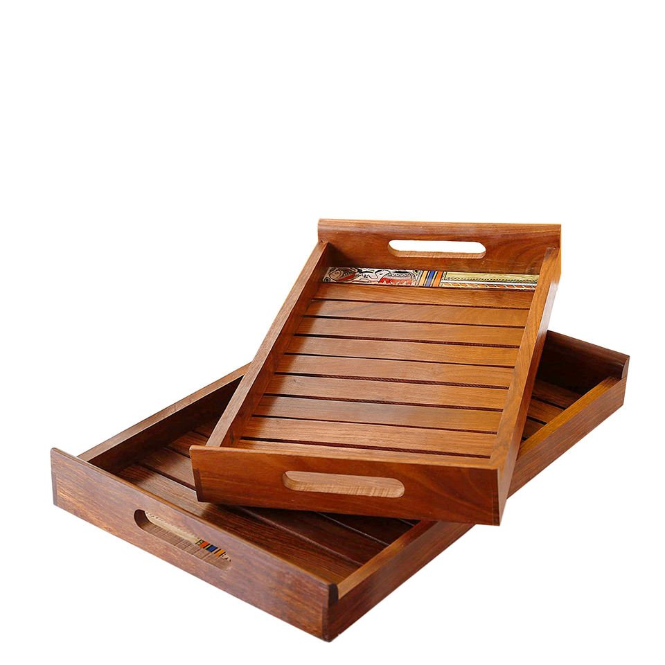 ชุดถาดเสิร์ฟอาหารอเนกประสงค์2ชิ้นถาดเสิร์ฟไม้เนื้อแข็งดีไซน์เนอร์รุ่นใหม่ใช้ในร้านอาหารของโรงแรม