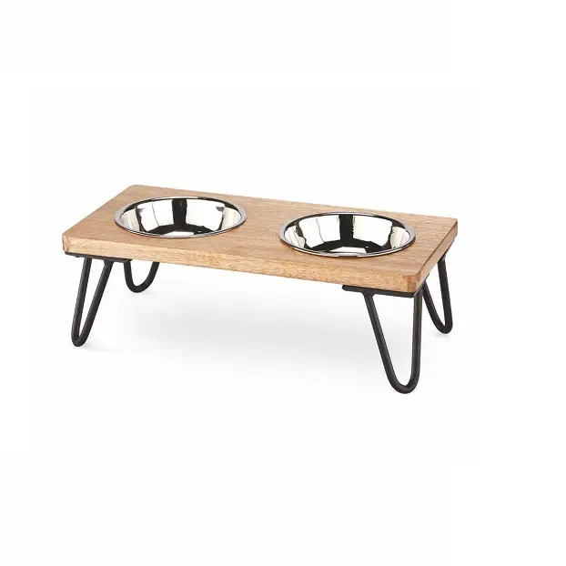 ชุดหม้อชามอาหารเย็นสองชั้นพร้อมขาตั้งลวดอุปกรณ์ป้อนอาหารสัตว์เลี้ยงทำจากสเตนเลสสตีล