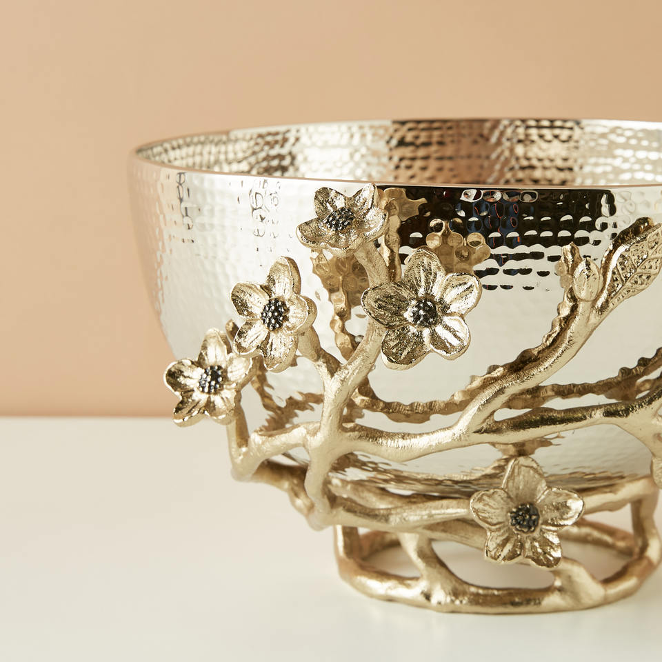 ชามเสิร์ฟอาหารสแตนเลสพร้อมลายดอกไม้สำหรับงานปาร์ตี้ช็อกโกแลตผลไม้และถั่ว