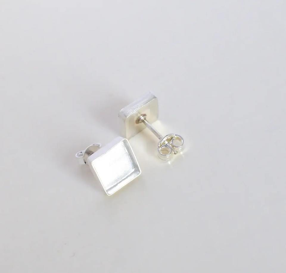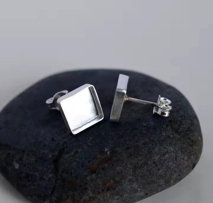 925 S925เงินสเตอร์ลิงต่างหูแบบว่างเปล่าขอบถ้วย4x6ถึง23x33มม. เครื่องประดับคอลเลตทรงสี่เหลี่ยมผืนผ้า DIY การตั้งค่าการทำเครื่องประดับ