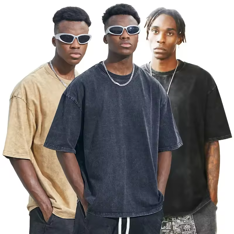 เสื้อยืดลายล้างกรดฮิปฮอปโอเวอร์ไซส์แนวสตรีทเสื้อยืดวินเทจแบบสั่งทำเสื้อยืดพิมพ์ลาย DTG สำหรับผู้ชาย
