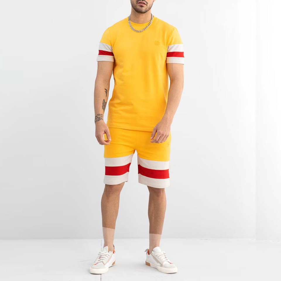 ชุดฤดูร้อนคุณภาพสูงสำหรับผู้ชาย เสื้อยืดและกางเกงขาสั้น ชุดผ้าฝ้าย 100% เนื้อผ้าเบา แห้งเร็ว รับสั่งทำพร้อมพิมพ์โลโก้