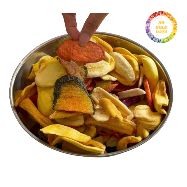 ผักรวมและผลไม้กรอบคุณภาพเยี่ยม แพ็คหลากหลายสำหรับส่งออก ขนาด 200 กรัม 250 กรัม 500 กรัม บรรจุในซองแบบตั้งได้สำหรับขายปลีก
