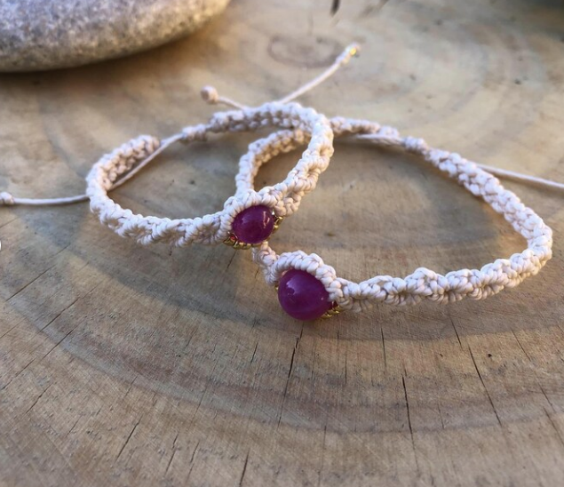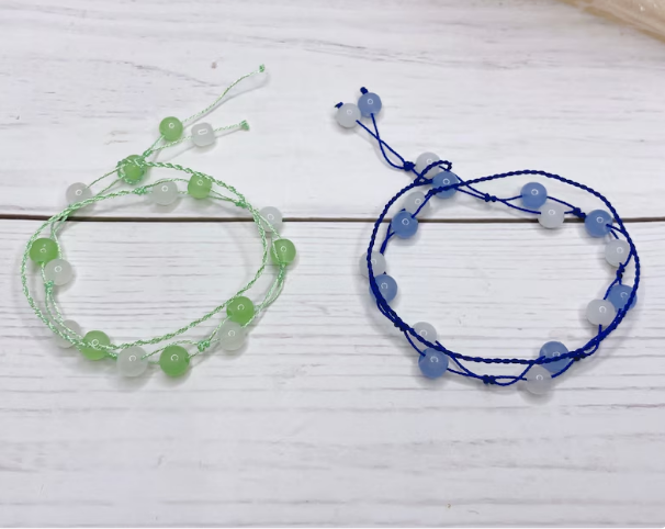 พลอยตาเสือทรงกลมที่มีคุณภาพดีเยี่ยมพร้อมลูกปัดทองเหลืองขนาดเล็กสร้อยข้อมือมาคาราเม่แบบปรับได้เครื่องประดับแฮนด์เมดสำหรับเป็นของขวัญ